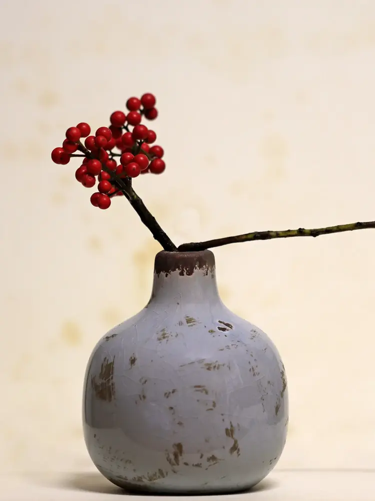 Ta en gammel vase du allerede har og kle den med leire, eller mal den med maling som du blander litt bakepulver i. Da vil du få en struktur på malingen som ikke blir helt perfekt og helt i wabi sabi-ånd. Og vips så har du en ny «gammel» vase!